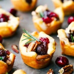 Cranberry pecan brie bites are such an amazing appetizer! It has layered pecans, soft brie, a dollop of cranberry sauce all cupped in a golden brown, flaky crescent roll.
