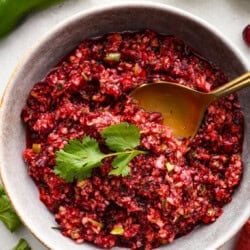 Cranberry salsa is a fresh cranberry mixture of sweet and savory that is laid over cream cheese. It makes for the BEST holiday appetizer! You can also serve it in place of cranberry sauce with your Thanksgiving or Christmas dinner.