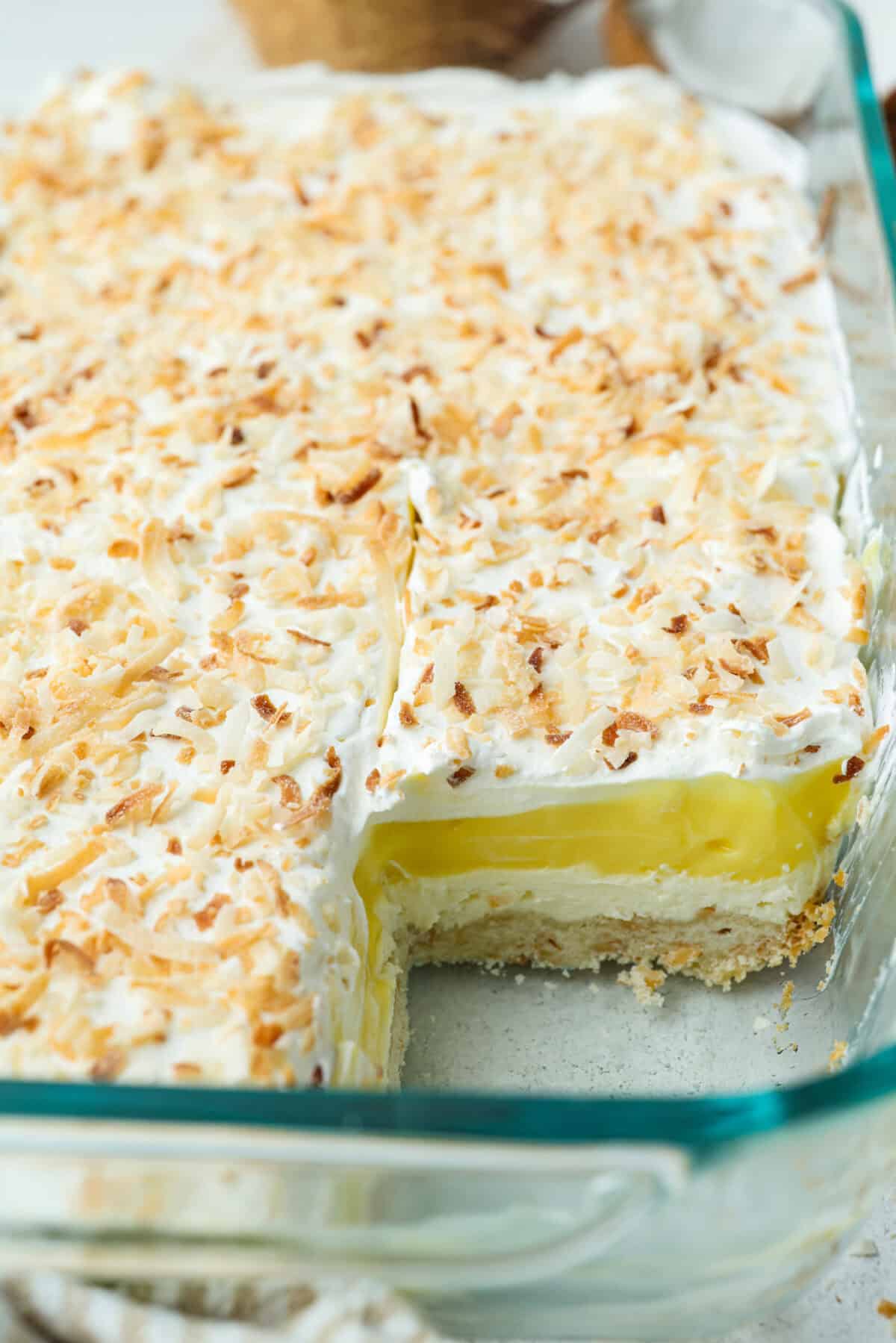 - Graham Cracker Crust: Swap the coconut crust for a graham cracker crust. Mix 2 cups of graham cracker crumbs with 8 tbsp melted butter and press into the dish. You can also use shortbread or Nilla wafer cookie crumbs.