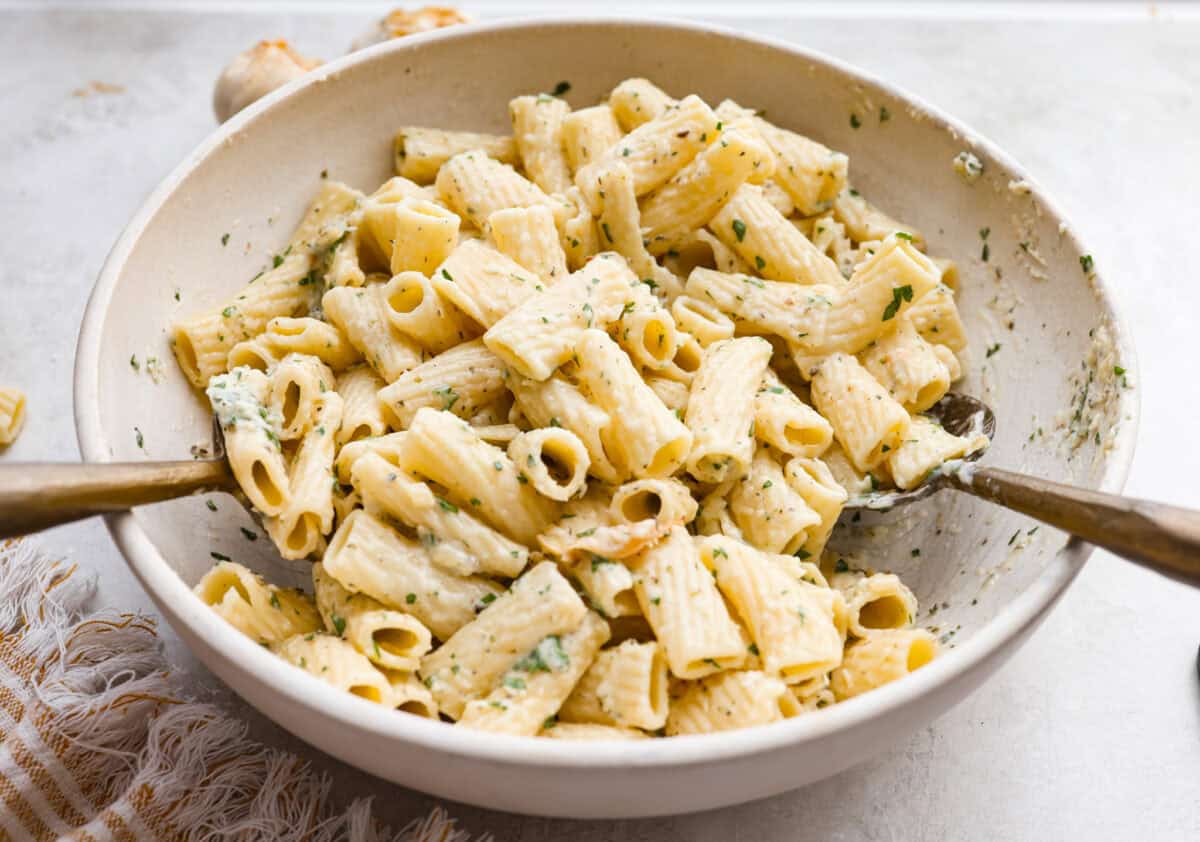 Hot Pasta! Make sure to add your pasta to the garlic butter mixture while it’s hot! It needs to be hot so the butter melts and coats the pasta.