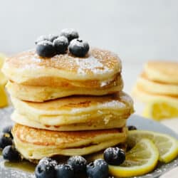 These lemon pancakes are the best pancakes that you will EVER eat! They are soft, delicious, and have the slightest hint of lemon flavor that will go perfect with just about any topping that you put on them!