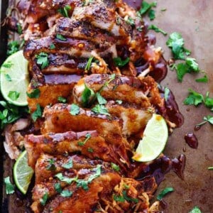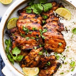Mexican pollo asado is some of the juiciest, most flavorful grilled chicken you’ll ever taste. Each chicken thigh is marinated in a mix of tangy lime, orange, and a blend of spices for some kick. You’ll love each tender, flavor-packed bite!