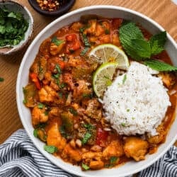 Experience the irresistible taste of Panang curry with this easy recipe. Juicy chicken, colorful bell peppers, and aromatic Thai basil come together in a creamy coconut milk and curry paste sauce, delivering a delightful and flavorful meal.