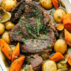 Fork-tender, melt-in-your-mouth pot roast with delicate potatoes and sweet carrots in a perfectly seasoned broth. This recipe is super simple but will make you feel like you’ve spent all day cooking.