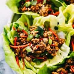 Asian turkey lettuce wraps are packed with tender meat and seasoned, crunchy veggies. These light and tasty wraps are the perfect healthy appetizer or even dinner!