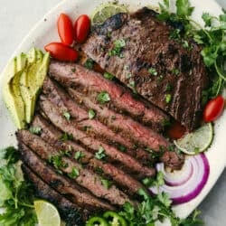 Enjoy this homemade carne asada recipe marinated in delicious Mexican flavors and spices. This juicy and tender flank steak is grilled to perfection for you to devour on its own or in any of your favorite Mexican dishes.