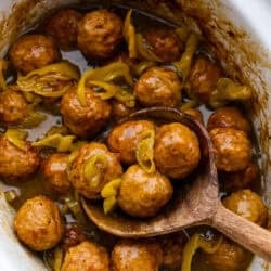 Crockpot Mississippi meatballs make the best little appetizer or side dish. The flavorful pepperoncini mixed with the au jus and ranch seasoning packets with delectable butter makes the most amazing sauce. It’s perfectly soaked up by the tender meatballs.
